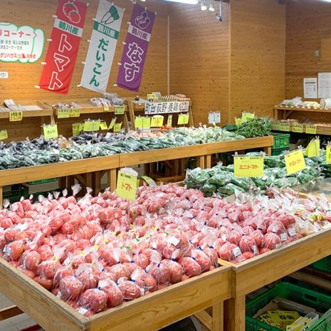 目の前の農場で採れたばかりの、新鮮野菜が並ぶ直売所!