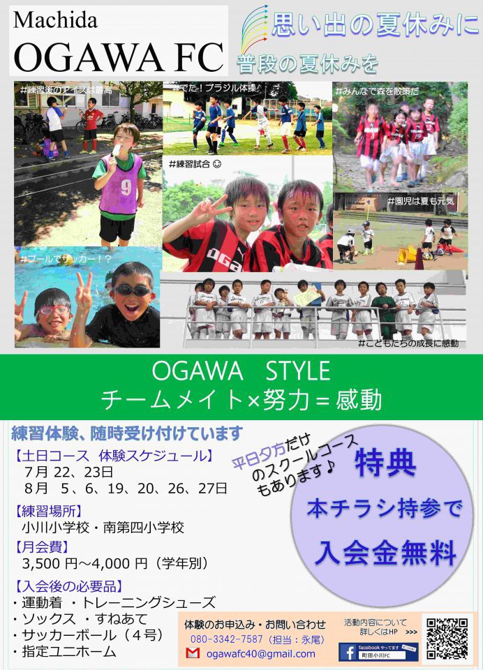町田市にお住いの園児・小学生の皆さん、夏休みからサッカーを始めてみませんか?
