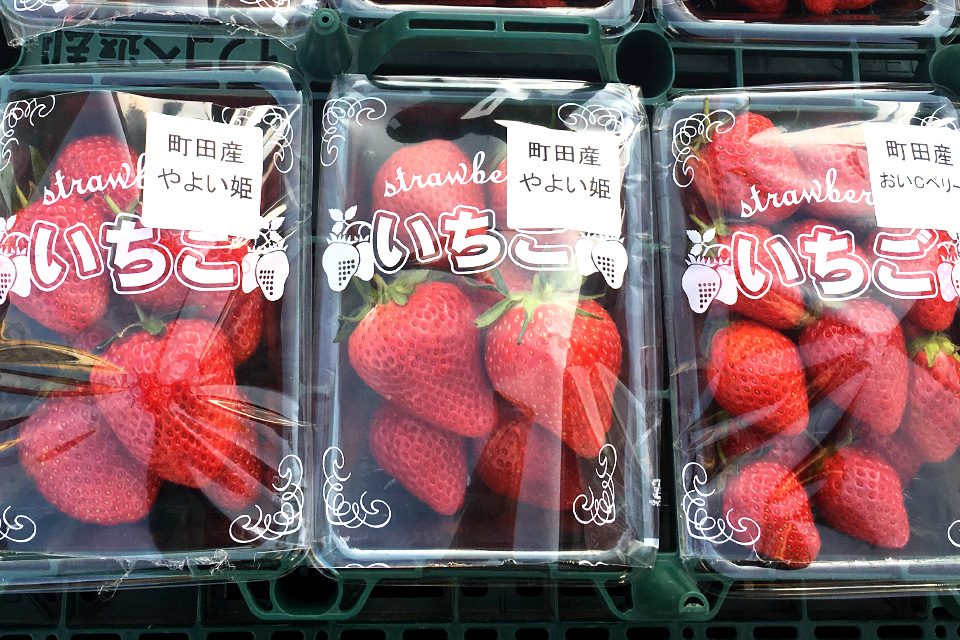 是非お越しください。写真は4月の日曜朝市で販売したイチゴです。