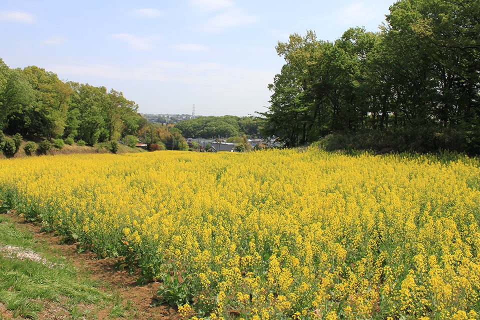 日本の歴史公園100選にも選ばれた薬師池公園から、少し坂道を上がったところにある七国山。そこに毎年春になると見ることができる絶景スポットがある!見たままを言うなら・・・どこまでも広がる黄金色のじゅうたん♪そう、食べても美味しい菜の花の畑が一面に広がってるの。この畑は、地元農家の人が集まってつくった「七国山ふれあいの里組合」の方々によって管理されているよ。組合メンバーの岩澤さんによると、この菜の花畑は二毛作の畑で、秋の間は蕎麦を育てているんだって。だから10月ごろに、わざわざ別の畑で菜の花のタネを蒔いて苗になるまで育てる。その後、蕎麦を刈り取った畑に苗を植え替えるんだってさ。この植え替え作業は毎年めちゃくちゃさむーーーい12月頃やるらしい・・・過酷だよね!しかも植え替えたら終わりじゃなくて、その後も台風や大雨で苗が流されないように土を盛って畝を作ったり、土かけという作業をしたり・・・とにかく手間をかけまくる!思わず「大変じゃないの?」って聞いたら、「大変じゃないとは言わないけど、たくさんの人が来てくれるのが嬉しいから大丈夫だよ」って・・・あなたは神か!ちなみに、花を楽しんだ後は種を収穫してなたね油になるよ!(詳しくはこちら: