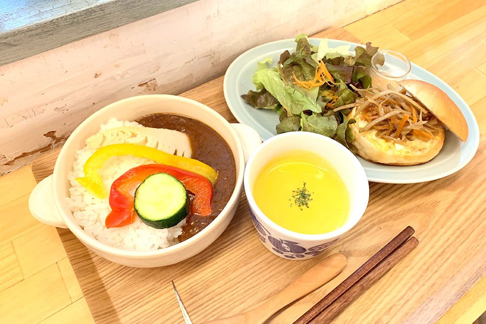 JR横浜線の成瀬駅から徒歩10分。南成瀬中西交差点のすぐそばにあるのが今回紹介する「きみどりカフェ」です。カフェの前の通りは町田では桜並木で有名ですから、迷う人はいないと思います!さて、こちらのメニューは、季節感を大切にした野菜がたっぷりのヘルシーさと、彩りの美しさが魅力です。中でも男女問わずの一番人気は「フルプレート」!『まち☆ベジ』がたっぷり使われています。スパイスと野菜の甘みが絶妙にマッチしたカレーに、『まち☆ベジ』中心の季節の野菜で作るスープ、サンドイッチ、サラダがセットになったお腹も大満足なメニューです。そしてもうひとつ注目なのが季節限定メニュー。今回伺った時には、パンケーキと『まち☆ベジ』たっぷりのデリのプレートがありました。小さめのパンケーキが5枚もついて、デリと一緒に食べたり、メイプルシロップをかけてデザートにしたりと、いろんな食べ方ができるプレートなんです。たまりません!きみどりカフェは、写真館で働いていた女性二人が人ともっと関わりたいという思いからオープンしたそうで、マルシェやワークショップを定期的に開催されています。イベントは毎月変わるため、きみどりカフェさんのSNSをチェックしてくださいね!また前職の経験を活かして、記念写真を撮る「きみどりフォト」という活動もされています。センスの良さが光る店内で、本格的な写真をしかも低価格で撮影してもらえますよ!店内には画家の方が持ち込まれた絵をはじめ、お客様が作ったという時計やインテリアも多数飾られています。お店に来たらこちらも必見ですね。なにより居心地がよく、のんびりしたくなるきみどりカフェ、ぜひ一度訪ねてみてください!
