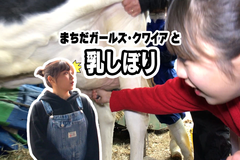 まちだガールズ・クワイアのえりかちゃんとひよりちゃんが、牧場で牛の乳しぼりとエサやりに挑戦!