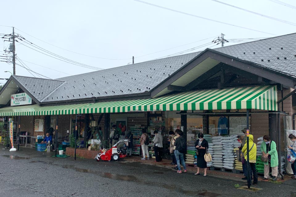 今日はアグリハウス鶴川にやってきたよ!鶴川郵便局の裏手に新しくなったJA町田市 鶴川支店がどどーんとあって、その横にアグリハウス鶴川があるんだよ。バスでも鶴川駅から10分程度。お散歩やサイクリングがてら来る人も多いし、駐車場もたくさんあるから車で来る人も安心なんだよ!雨だと言うのにすごい行列・・・2~30人はいるのでは?鶴川の人はまち☆ベジ好きなんだな!店長の丸山さんが晴れの日の週末は4、50人が並ぶこともあるって教えてくれたけど、それってすごない?