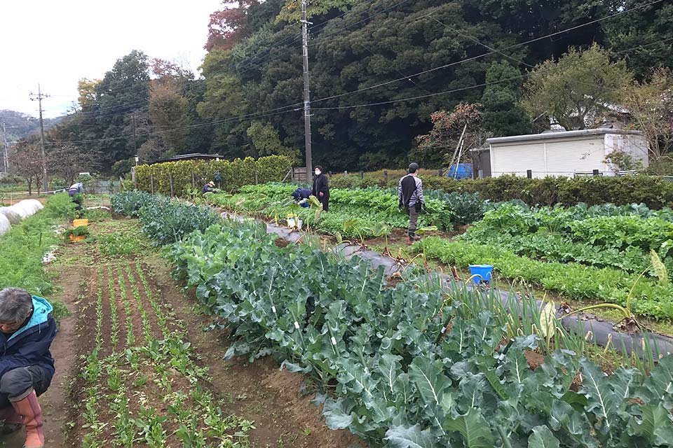 早速畑を見ながら説明を聞くよ!主に研修では、研修生1人に対して72平米の畑が割り当てられて、時期ごとに全員で決まった作物を育ててるんだそう。ふむふむ。ちなみに同じ作物でも、畝の南北で品種を変えて育てることで出荷時期を調整するんだって。他にも作物によって使える農薬が違うとか、実践的なことをたくさん学べちゃう!本当にプロを目指すための研修なんだ。すごーい!今回の見学者は10名を超えていて、例年よりも多め。あたしより少し年上ぐらいの若い人から、ご年配の人まで世代は幅広かった。「若い人が増えたのは農業のイメージが変わってきたからかも」と担当の人が話してくれたよ。見学に来たほとんどの人が、来年4月からの研修に参加したいと思っているとか・・・町田の農業の未来はこの人たちにかかっている!