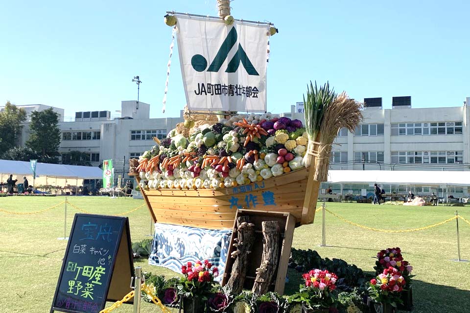私は13(土)に伺いました。この日はスッキリした秋晴れの中、とても気持ちいいシバヒロでした。町田市農業祭恒例の町田産野菜でつくられた宝舟もより綺麗に格好良く見える気がします。入場時には検温、消毒を徹底し、入場口、退場口を分けたりと感染対策をしっかりとしていました。この日は良い気候のためか、人出も多かったのでこの対策にはとても安心できました。