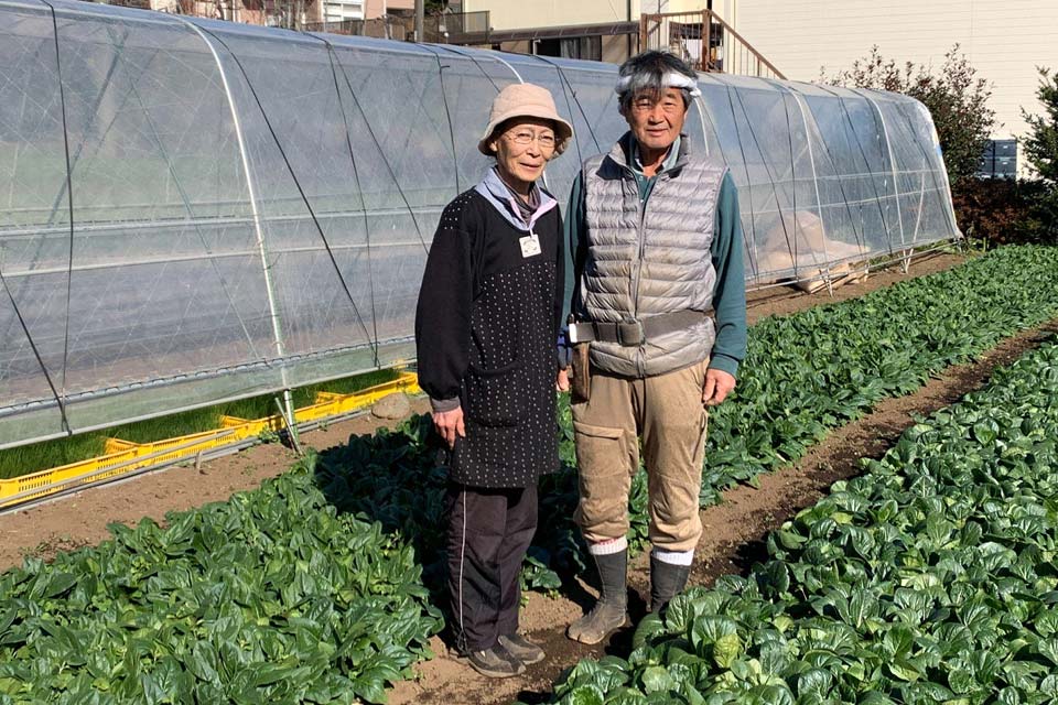 後ろで奥様が笑っていらっしゃいますね(笑)。80歳を超えてもお元気で、美味しい野菜を作ってください。今日はありがとうございました。