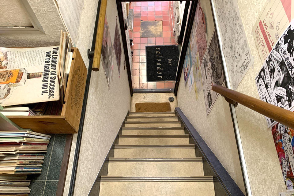 この路地を入っていった左側にユリイカさんへの入り口があります。狭い空間だけど自由で心が広くなるような空間でもあります。知の玩具箱のようなイメージでした。行く度に新たな発見がありそうで常連さんがいるというのも納得です。決して閉鎖的ではなくて誰でも入りやすく感じるのは近藤さんの「気配を消している」という気配りなどから来るものでしょうか。帰りの階段は急勾配なのでくれぐれも気をつけてくださいね。