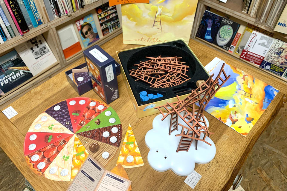蔵書を見渡して納得しました。見たことがない本のタイトルも沢山あります。一つひとつ見ていたら時間を忘れそうです。ところで、店内にボードゲームがたくさん飾ってありますが、こちらも売り物ですか?
