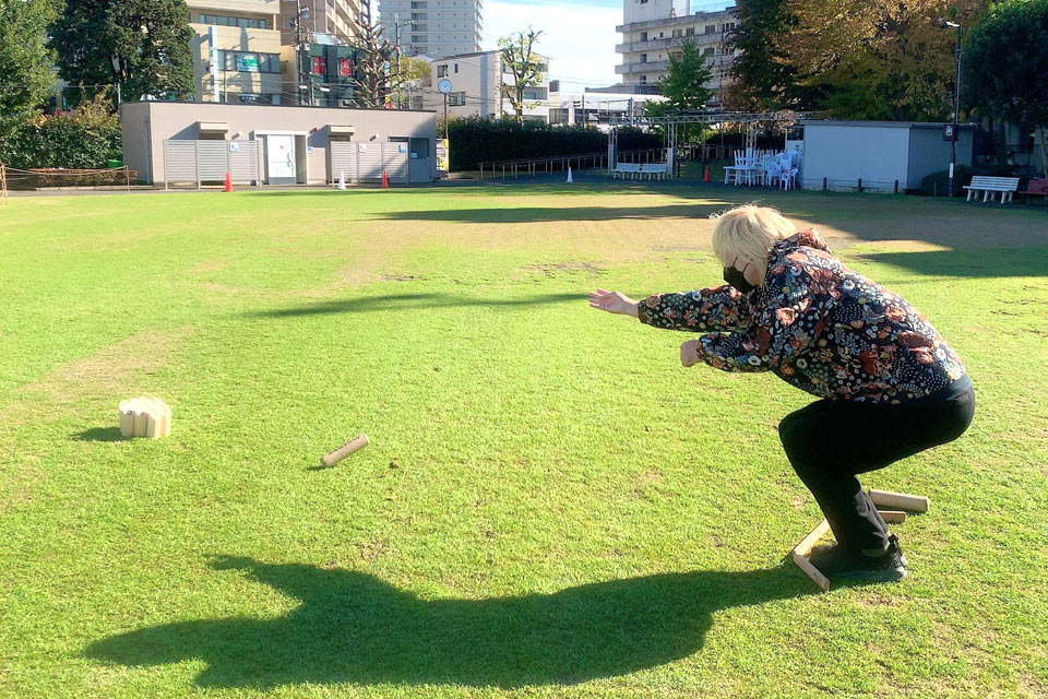 自分がキャンプとかBBQは好きだけどなかなか行けないのですぐには難しいのですが、そういうところにも広めていけたらなぁと思ってはいます。先日東京駅の構内で体験をやらせてもらった時に、1日目に来た人が2日目にも来てモルックセットを買いましたと教えてくださりました。聞いたらキャンプをやられる方で、仲間内でキャンプにいく時にやられるとおっしゃっていたんです。