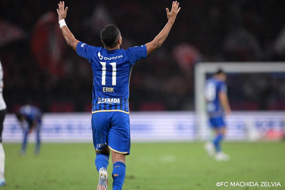 後半52分、ゴーーーール!!!同点です!!エリキ選手が決めました!藤本選手からのキレッキレのマイナスのクロスにエリキ選手が合わせて押し込みました!素晴らしいゴールです!