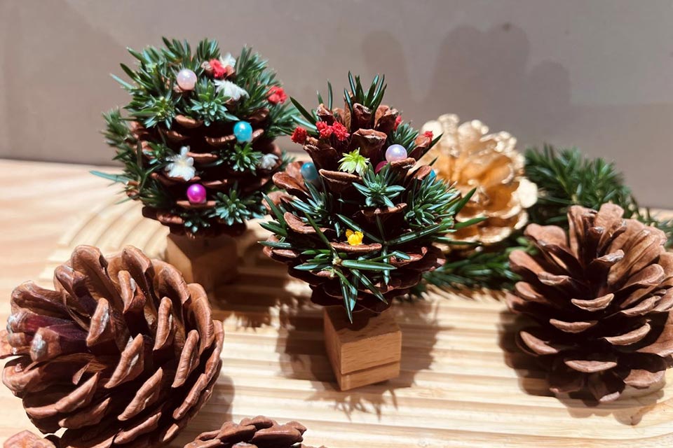 松ぼっくりのミニXmasツリーを作るワークショップもあるそうです。