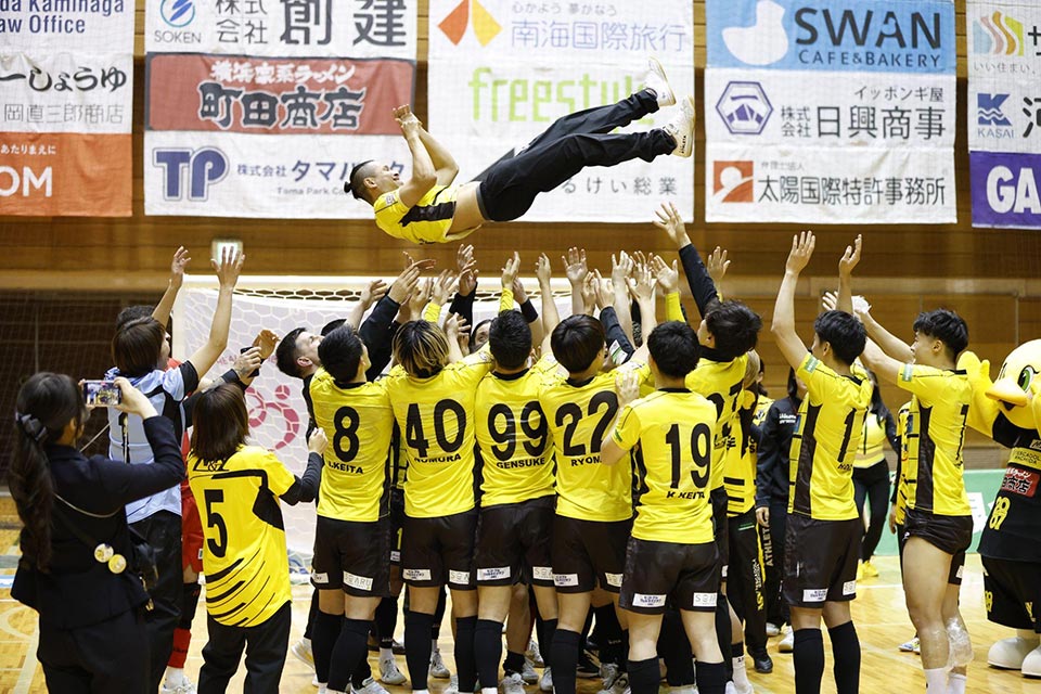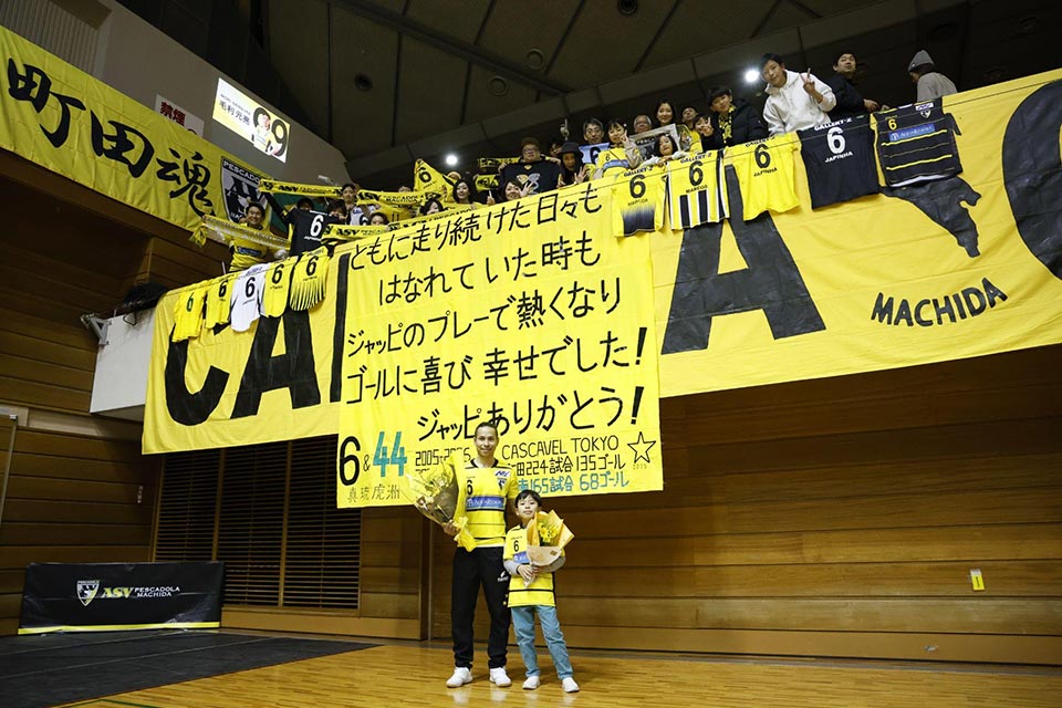 そしてジャッピーニャの愛称で呼ばれている本田 真琉虎洲選手の引退セレモニーが行われました。息子さんからの花束、スピーチ、最後にはみんなでの胴上げで今までを労いました。ジャッピーニャ選手、長い選手生活お疲れ様でした!