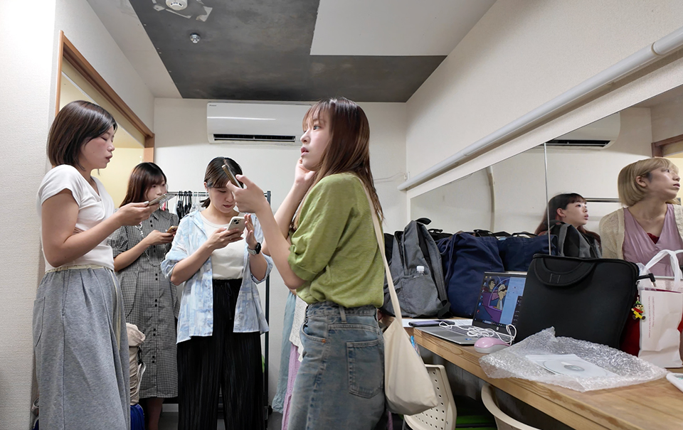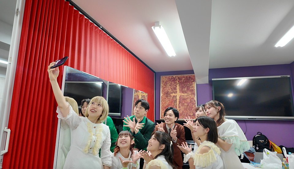撮影場所も自分たちで作り、ファンの方をお迎えします。カメラのセッティングはもえかちゃん。