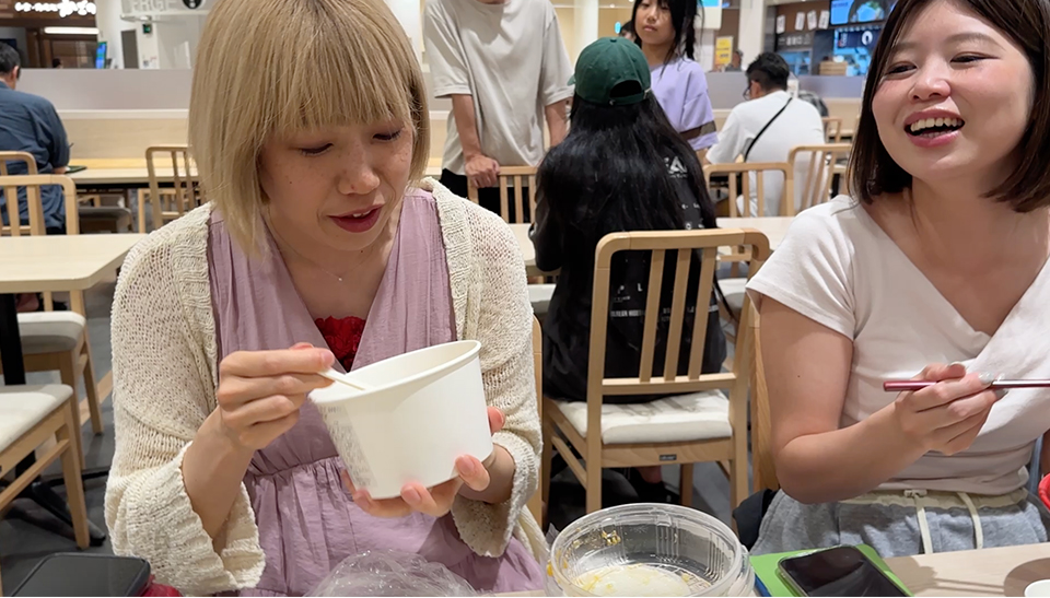 少しおにぎりなどは各々食べていましたが、しっかりした食事はないままでした。ここでは疲れた体にしっかりと栄養補給です。各々が好きなものを選んで食べています。