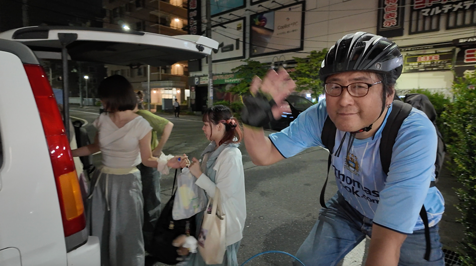 翌日は、お昼過ぎと夕方の2本のライブがあるため前日移動をしておきます。今回はライブ当日1つめのライブハウス前で合流しました。