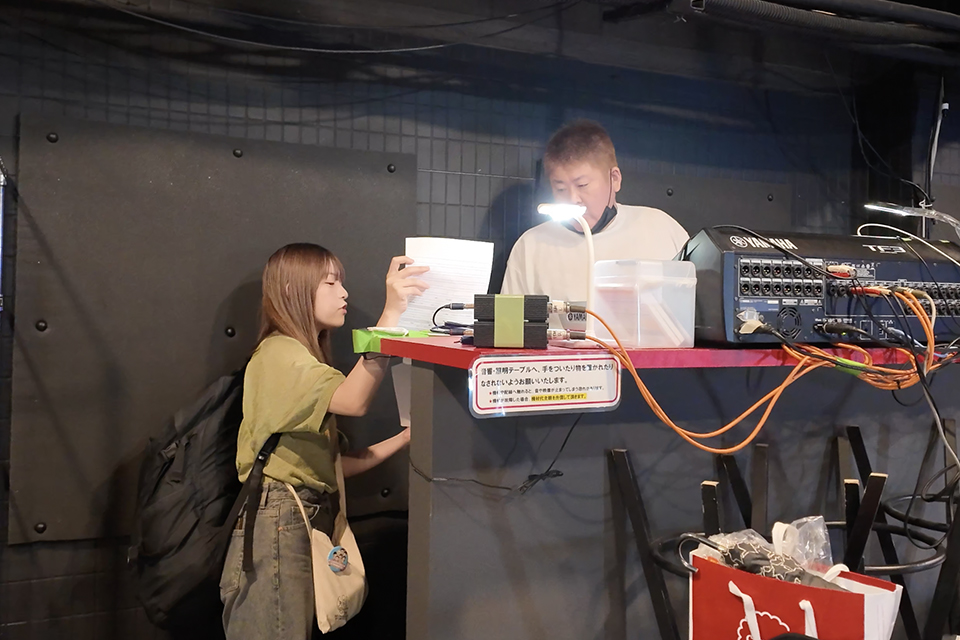 リハーサルでは、ライブハウスの方と確認をします。準備をしたら本番です。
