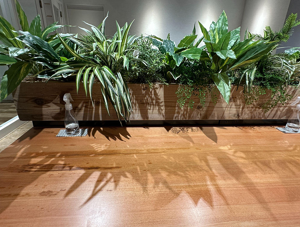こちらは、前の席との目隠しにもなるグリーンです。癒されるだけではなく、正面の人の目線が気にならない仕掛けもありがたいですね。