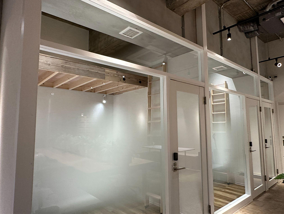 ロフトを活かした開放的な個室です。プライバシーには配慮しつつ、明るく開放的な雰囲気です。上段があることで、占有面積が広く取れる個室が3部屋あります。