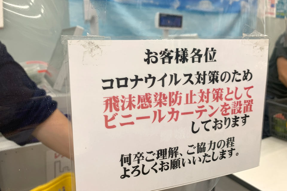 このビニールカーテンだけでなく、二酸化炭素濃度が高くなったらアラートを発するような機械も設置しました。アルコールの設置ももちろんしています。他にも、土曜日の朝などは開店前に並んでいただくことも多いので、距離を保てるようにテープを貼り、買い物カゴには光触媒コートをかけています。以前はクレベリンも使っていました。誰もが安心して買い物をしていただけるように、できることはなんでもやろうと思っています。
